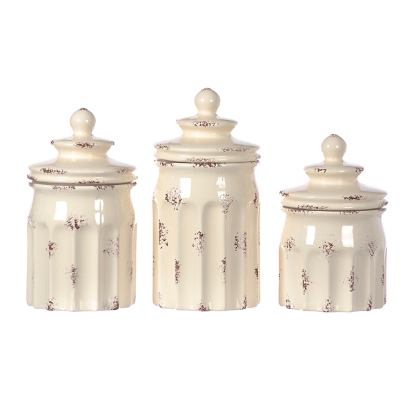 Distressed Ivory Fleur De Lis Canisters Set Of 3 Kirklands from images.kirklands.com