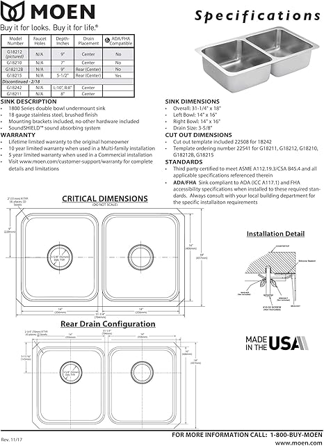Sign up to receive moen design trends and tips, maintenance reminders, and future discounts, and we'll enter. 1800 series 33x22 stainless steel 18 gauge single bowl drop in sink. What other items do customers buy after viewing this item?